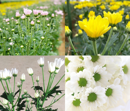 栽培品種の多さや日持ちの良いのが特徴のスプレーマムですが、当農園ではホワイト・ピンク・イエローは一年を通して安定的な出荷が可能であります。